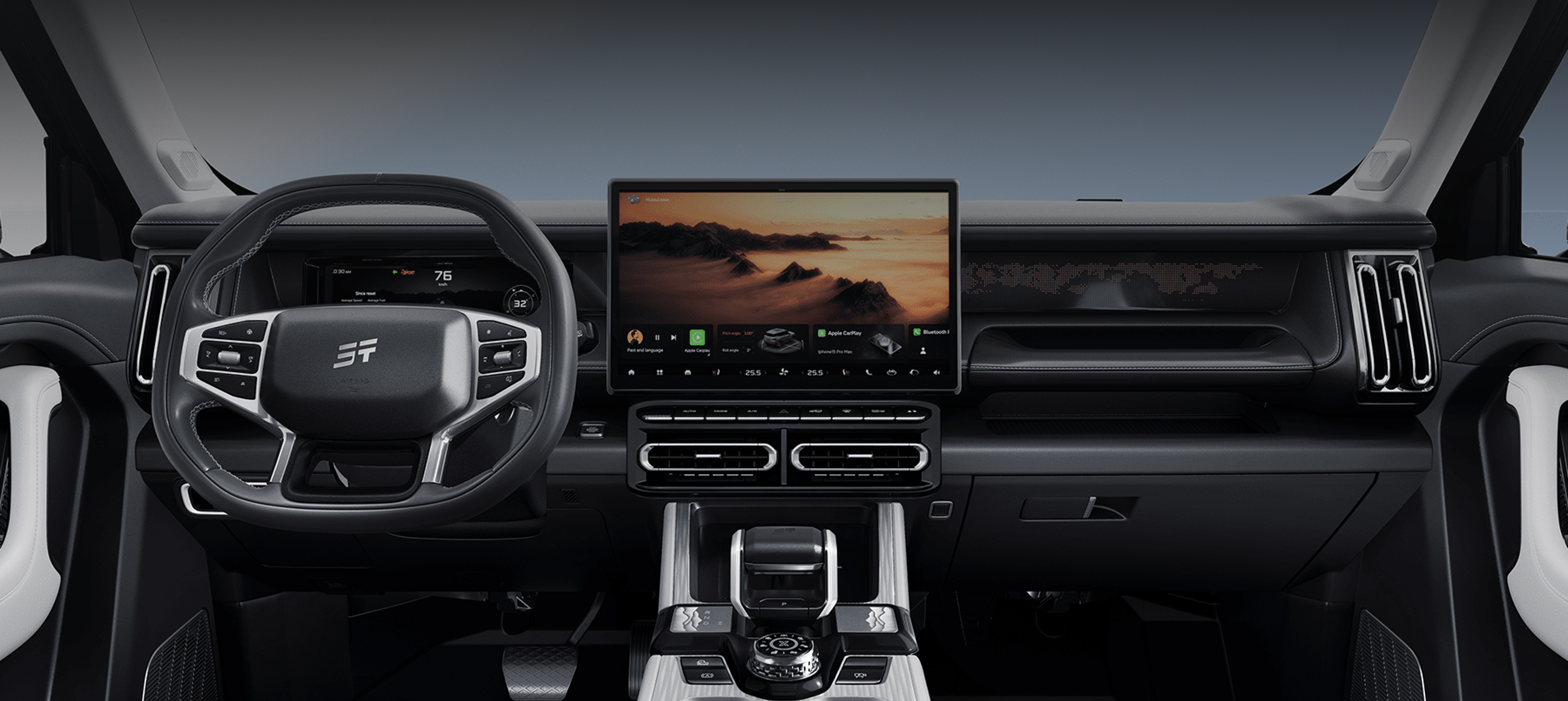 Салон T1 — это продуманное пространство, где каждая деталь работает на ваш комфорт. Отделка премиум-материалами, эргономичные сиденья, двухслойные шумопоглощающие стекла первого ряда. Управляющий селектор, расширенные опции для удобства водителя, премиальная акустика Sony, мультимедиа Snapdragon 8155, 10,25–12,8" HD-экраны, поддержка Apple CarPlay и Android Auto обеспечивают уровень технологичности и удобства выше среднего.
